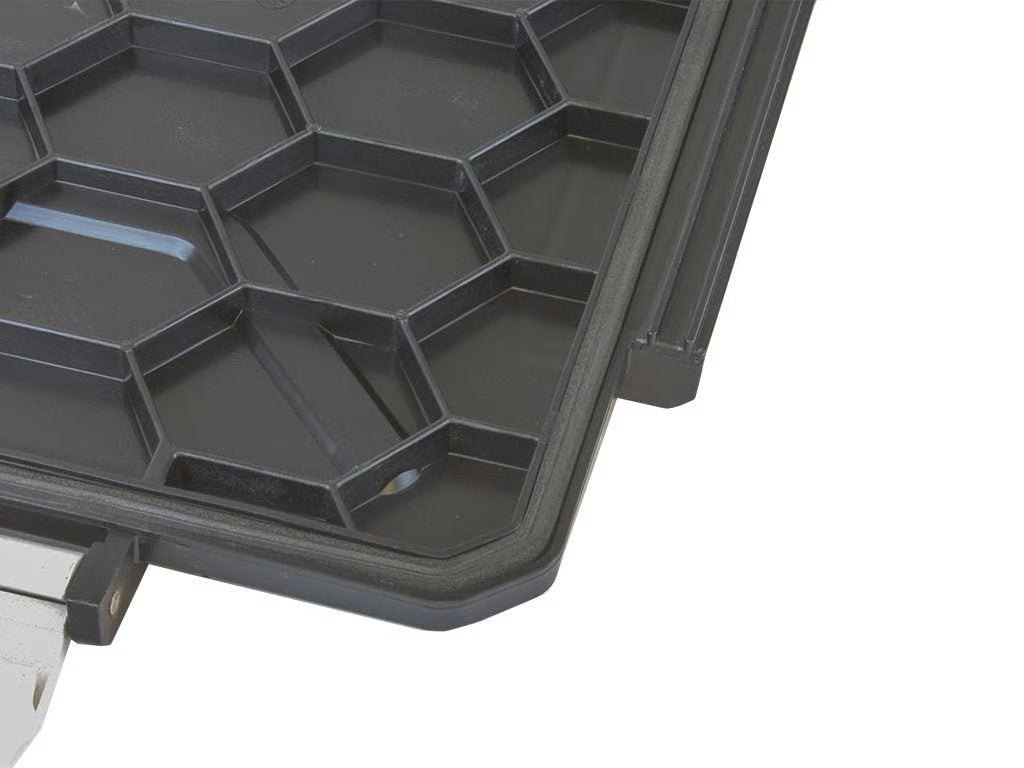 These plastic, workable sized storage boxes are easy to arrange in a cargo bed and vertical-sided to avoid wasted space. They stack securely for convenient storage in your vehicle thanks to the lids fitting neatly into the base of the box above it.